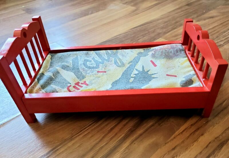 Barbie Size Wooden Doll Bed Adorable 11 in. Red EUC