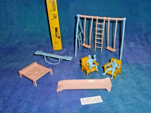Vintage 50s Tin Marx Dollhouse Plastic Furniture Lot: Playground Set w Boys MC45