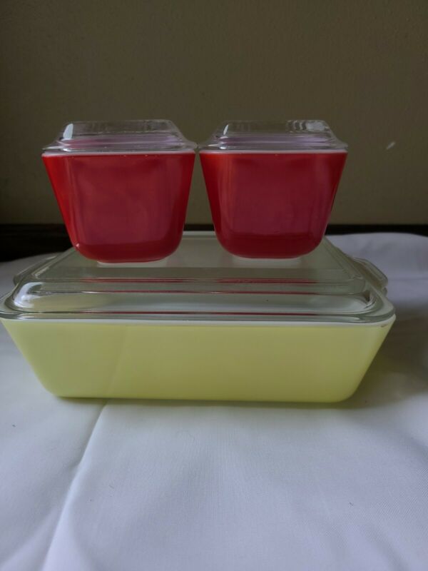 Title (ebay affiliate link): Vintage Set Of three Pyrex Primary Colors Refrigerator Dishes With Lids GREAT!