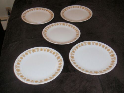 VINTAGE CORELLE FIVE (5) 10" DINNER PLATES BUTTERFLY GOLD