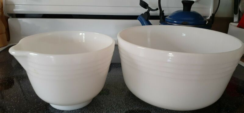 Title (ebay affiliate link): Vintage Hamilton Beach Stand Mixer White/Milk Glass Mixing Bowls