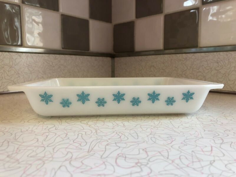 Title (ebay affiliate link): Pyrex 545-B 1 1/4 Quart Space Saver Casserole White Turquoise Snowflake No Lid