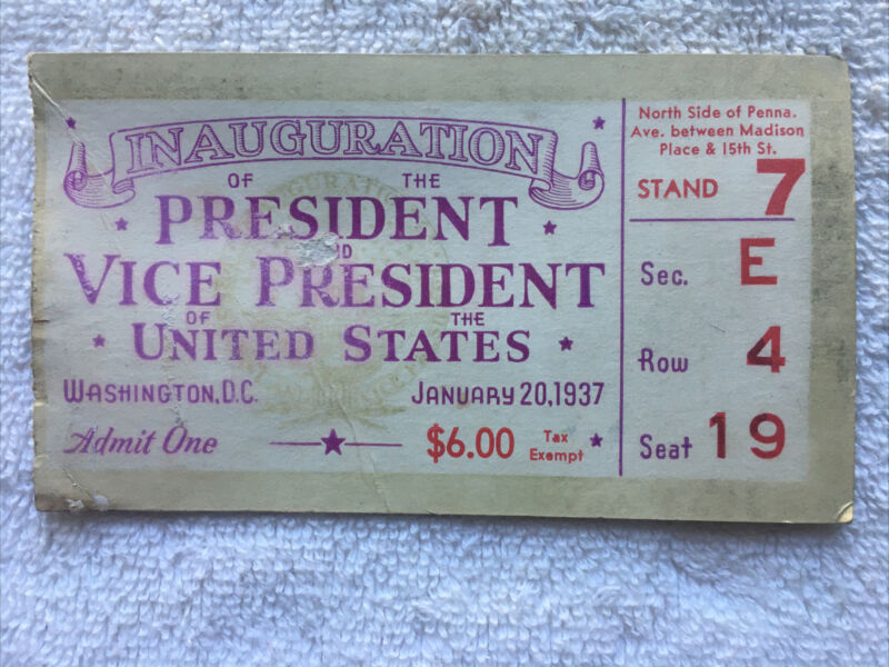 Title (ebay affiliate link): US Inauguration Ticket ( Card ) January 20 , 1937 Franklin D. Roosevelt !