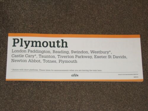 Title (ebay affiliate link): GWR window/carriage label - London Paddington to Plymouth - NBY015 - diversion