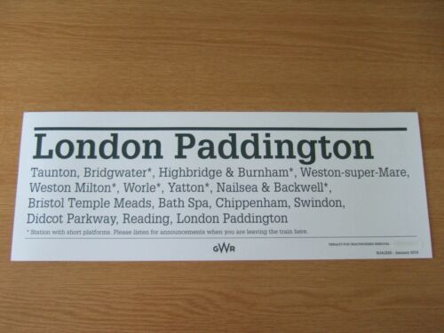 Title (ebay affiliate link): GWR window/carriage label. Taunton - London Paddington. JAN 19 - NJAJ222