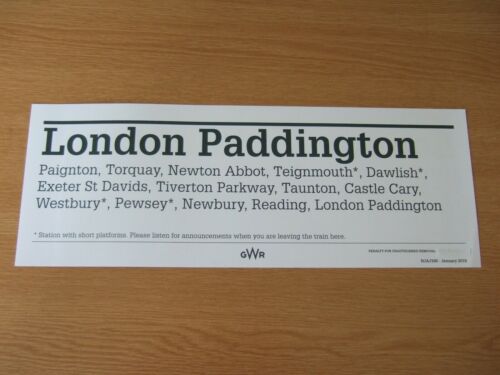 Title (ebay affiliate link): GWR window/carriage label. Paignton - London Paddington. JAN 19 - NJAJ168