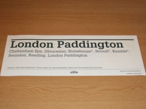 Title (ebay affiliate link): GWR window/carriage label. Cheltenham Spa to Paddington. NJAJ008. Jan 2018