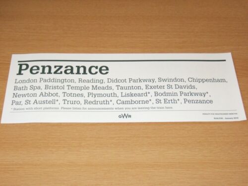 Title (ebay affiliate link): GWR window/carriage label. London Paddington to Penzance. NJAJ100. Jan 2018.