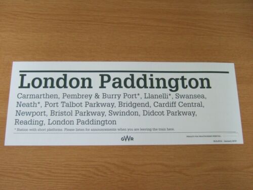 Title (ebay affiliate link): GWR window/carriage label. Carmarthen - London Paddington. JAN 19 - NJAJ014