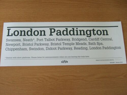 Title (ebay affiliate link): GWR window/carriage label. Swansea - London Paddington. JAN 19 - NJAJ220