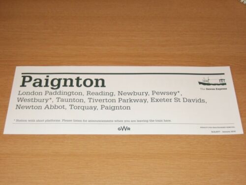 GWR window/carriage label. London Paddington to Paignton. NJAJ077 Jan 2018 NAMED