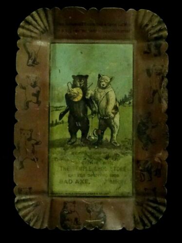 Roosevelt Bears Advertising Tray 1906 Temple Shoe Store Bad Axe Michigan