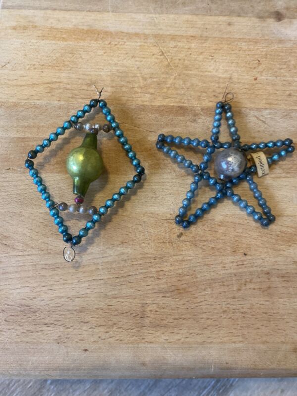 Xmas Orn Bead / Mercury Glass Christmas Ornaments (2) Rare Christmas Orn