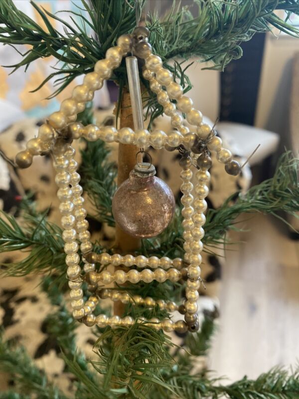 Title (ebay affiliate link): Beaded CHRISTMAS Orn With Mercury Glass Orn 3d House Shaped Orn Cream/Blush RARE