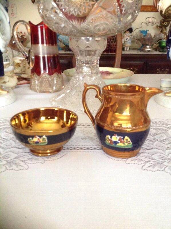 ANTIQUE COPPER LUSTER BOWL AND PITCHER