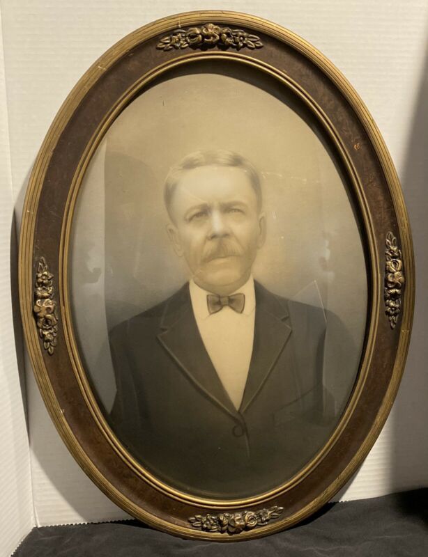 Title (ebay affiliate link): VINTAGE LARGE CONVEX BUBBLE GLASS OVAL PICTURE FRAME WITH PICTURE OF MAN