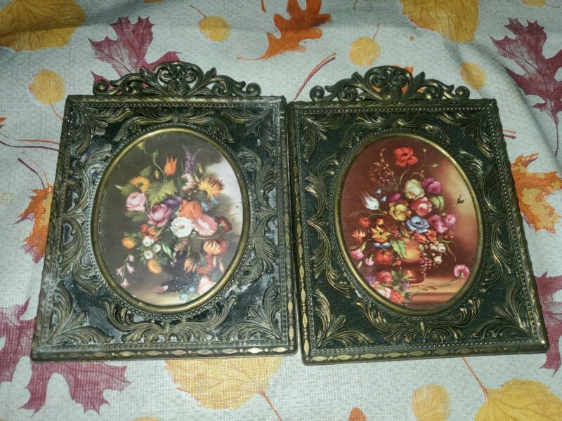 Italian 2pc. Ornate Metal Frame Vintage Made in Italy Small Photo Victorian