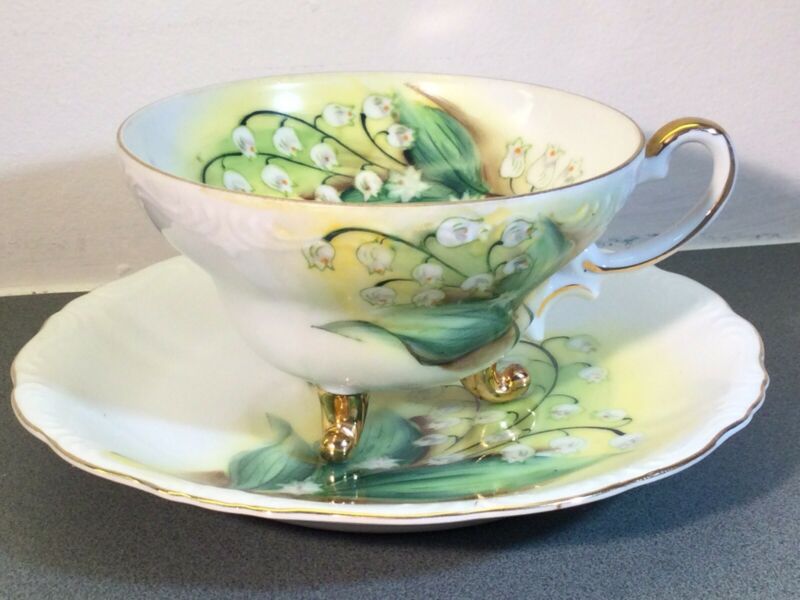 Norcrest Three 3 Footed Teacup With Saucer, Fine China Hand Painted