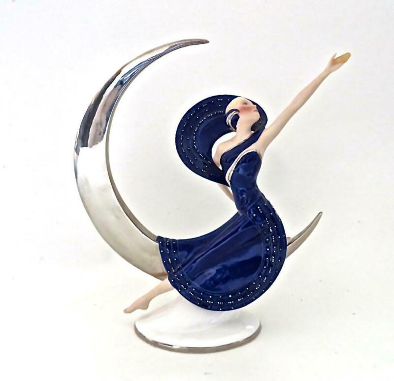 Title (ebay affiliate link): Vintage Art Deco Porcelain Beautiful Woman Riding on Quarter Moon by Franklin