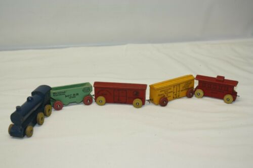 Title (ebay affiliate link): Vintage Strombecker Wood Train Blue Engine Cars and Caboose 5 Items Clean Old