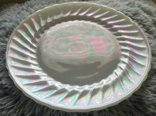 ANCHOR HOCKING WHITE SWIRL AURORA SHELL DINNER PLATE SET OF FOUR