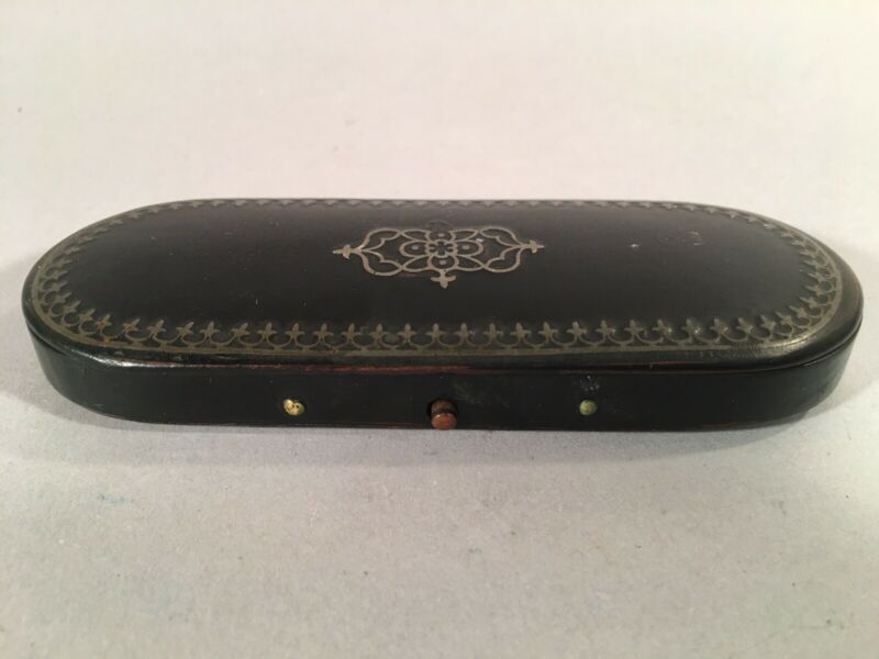 Title (ebay affiliate link): Antique Victorian Inlaid Paper Mache Velvet Lined Eyeglass Case