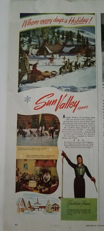 Title (ebay affiliate link): 1948 Sun Valley Idaho Gretchen Fraser world champion slalom skier Olympics ad