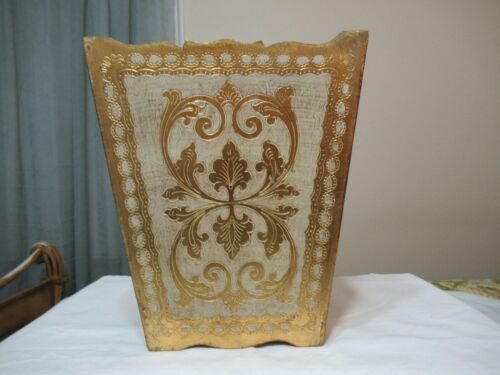 VTG FLORENTINE WAST PAPER BASKET TRASH CAN GOLD GILT ITALY NICE (AD 82)