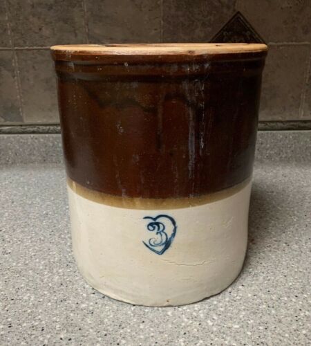 Two tone 3 gallon stoneware crock HEART WITH 3 IN CENTER