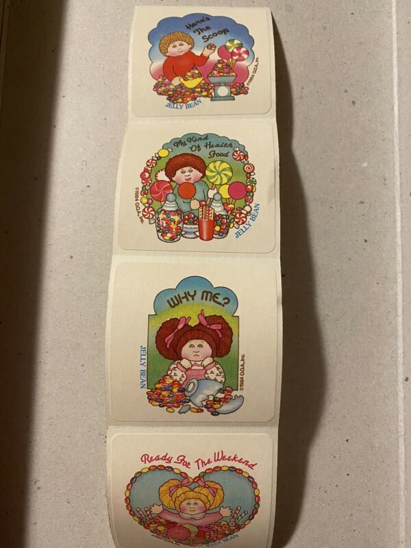 Title (ebay affiliate link): Vintage 80s Rare Cabbage Patch Kids Stickers 4 Scratch N Sniff Jelly Bean