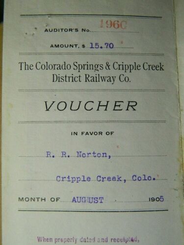 Title (ebay affiliate link): 1905 Colorado Springs & Cripple Creek District Railway Co. State Bank VOUCHER