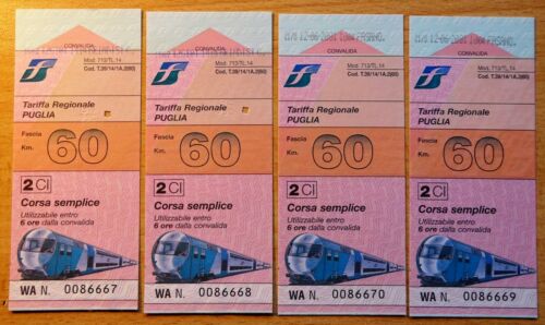 Title (ebay affiliate link): Railway Tickets (4) - Puglia - Italy - 60km Single Fare