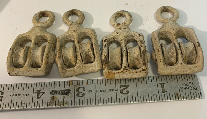 4 Vintage 2 Inch Metal Dual Pulleys