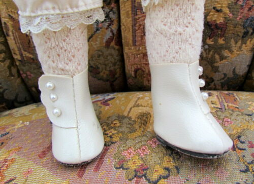 Title (ebay affiliate link): DOLL BOOTS, 1 3/4" 46 mm x 7/8" IVORY w PEARLY BUTTONS + STOCKINGS, VINTAGE