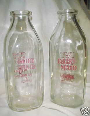 ~2 Dairy Maid Grade A One Quart Glass Milk Bottles~