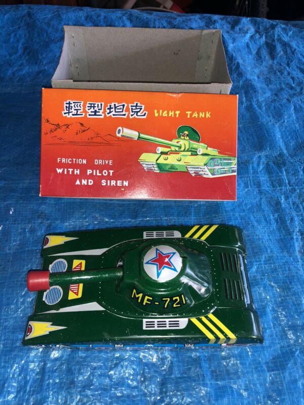 Title (ebay affiliate link): Vintage Chinese Tin Toy Light Tank MF 721 W/ Box Friction Drive