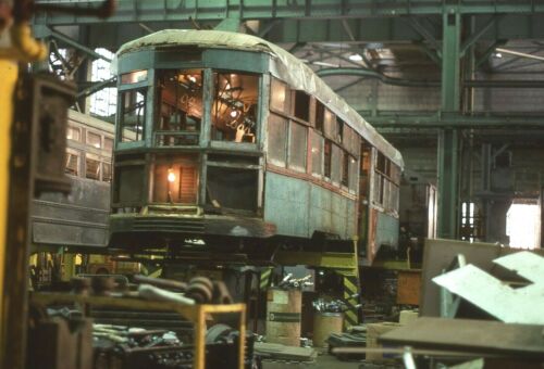 BROOKLYN & QUEENS TRANSIT ORIGINAL SLIDE CAR 8361 BEING RESTORED CONEY ISLAND