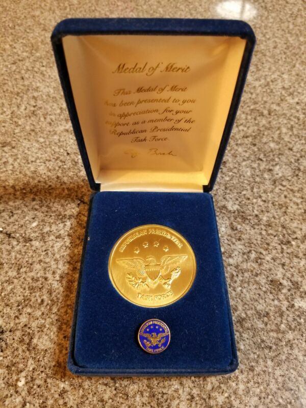 Title (ebay affiliate link): MEDAL OF MERIT GEORGE BUSH REPUBLICAN PRESIDENTIAL TASK FORCE ORIGINAL BOX