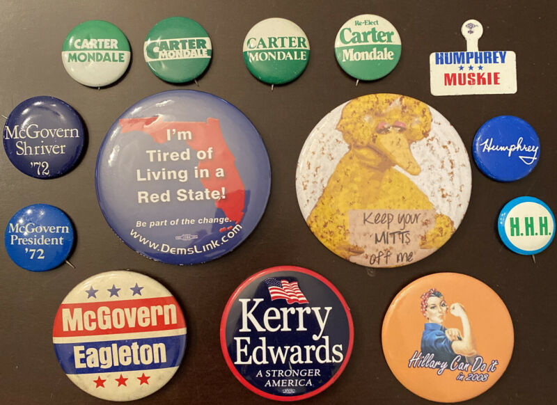 Title (ebay affiliate link): Democrat Party Kerry Carter Humphrey McGovern Hillary Pinback Buttons Lot Of 14