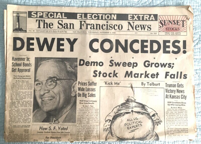 Title (ebay affiliate link): Vintage 1948 Presidential Election Dewey Concedes San Francisco Newspaper