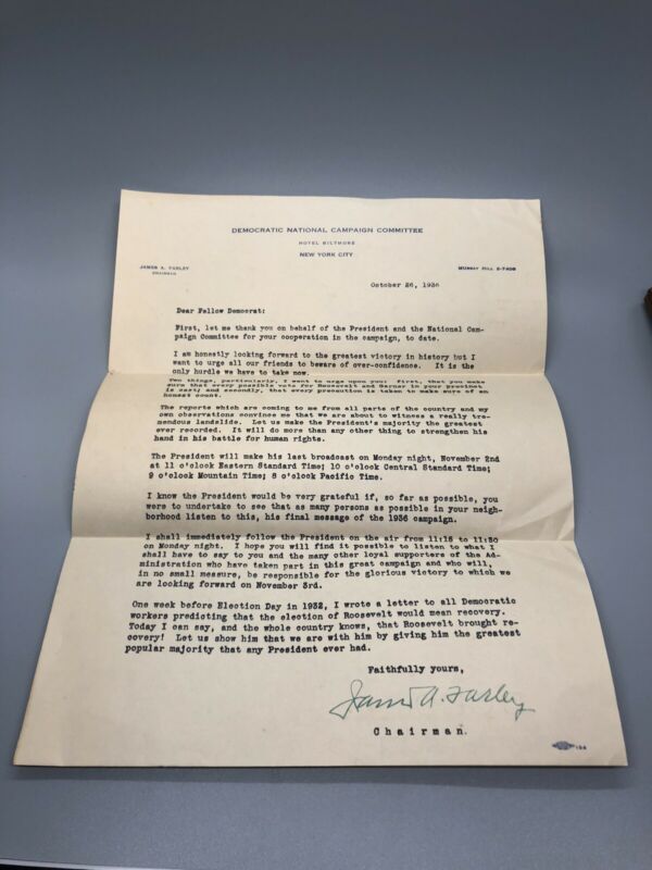Title (ebay affiliate link): Franklin Roosevelt 1936 Signed Letter By James Farley DNC Historic Cool!