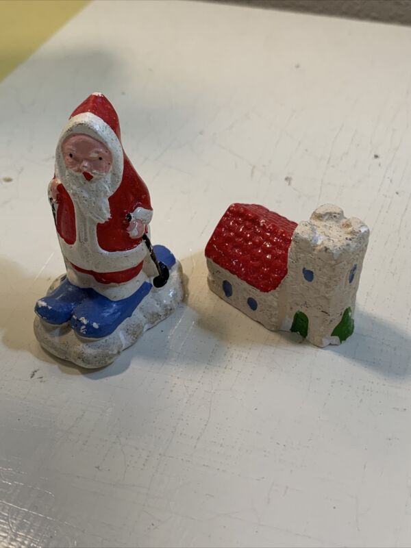 Title (ebay affiliate link): 2 Vintage 1930s Chalkware Miniature Figures Cake Toppers Snowbabies England