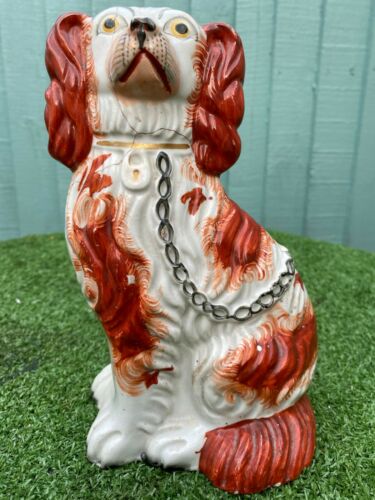 Title (ebay affiliate link): MID 19thC STAFFORDSHIRE SEATED RUSSET RED & WHITE SPANIEL DOG c1850s