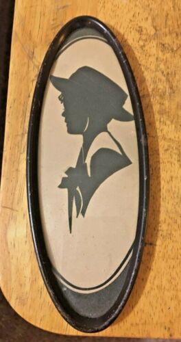 Antique Silhouette Portrait Of Cowgirl in metal oval frame