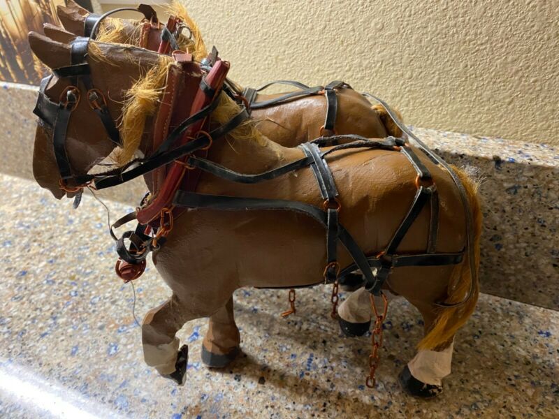 Set of Two Vintage Hand Carved Wooden Harness Horses 1940''s-1950''