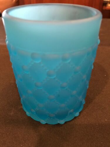 Turquoise Blue Satin Glass Tumbler Dot Quilted Pattern