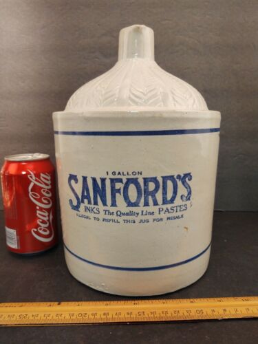 Title (ebay affiliate link): Vintage Sanford''s 1 Gallon Ink Jug w/ Spout Handle Blue White Stoneware