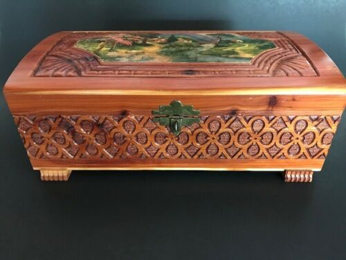 Decorative Wood Carved Inlayed Hinged Storage Box 1970''s