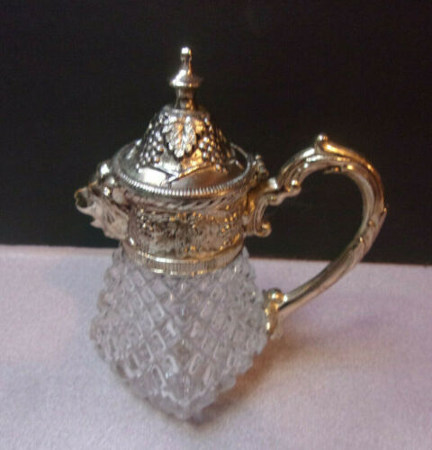 Title (ebay affiliate link): Vintage Diamond Cut Glass / Lions Head Metal Spout Creamer / Syrup Pitcher