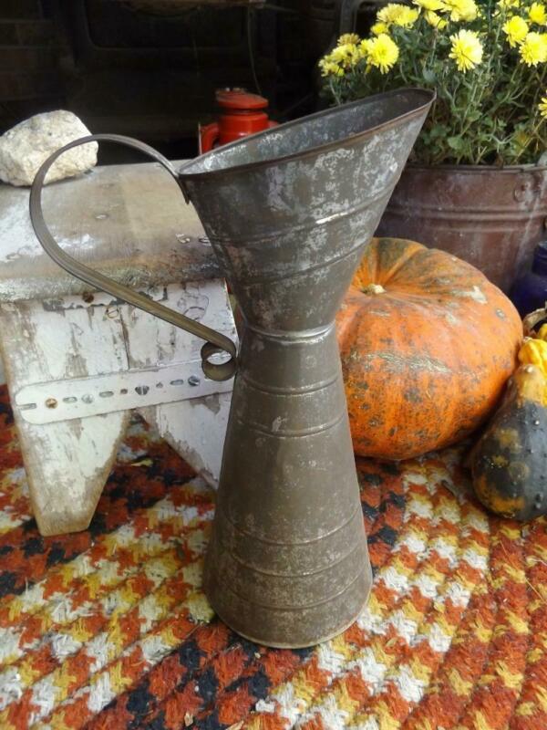 Title (ebay affiliate link): Old Primitive Vintage or Antique Tall Tin Pitcher Measure ? GREAT Patina!